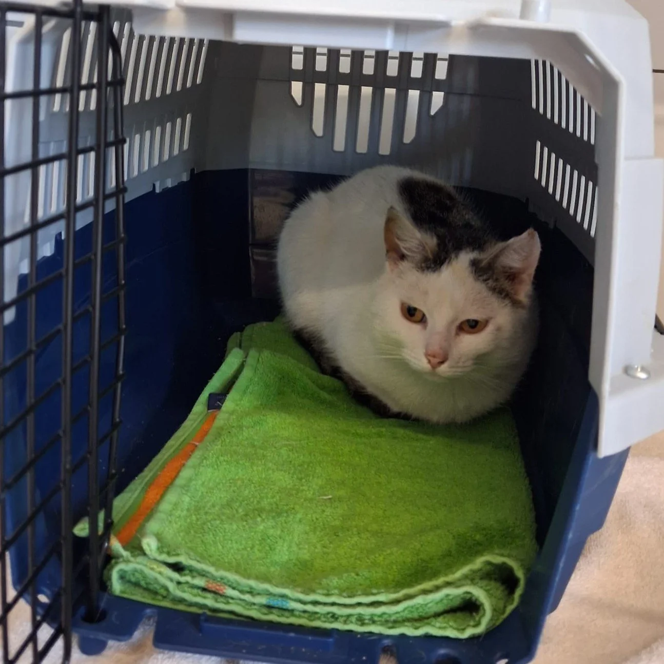 Bereits im Herbst 2025 ist diese scheue Katze in Fridolfing in der Bergfriedstraße zugelaufen und wurde nun zu uns gebracht.
